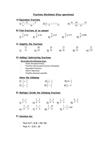 Fraction Operations Worksheet - four operations with fractions by seemkrish - Teaching ... : Math explained in easy language, plus puzzles, games, quizzes, videos and worksheets.