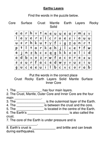Free Layers of the Earth Worksheets from thecraftyclassroom.com This is a worksheet where students have to interpret both written and visual information and answer questions on it. Earth layers blank worksheet, earth's layers worksheet and earth's layers worksheet are some main things we will show you based on the post title. However, kindergarten kids and preschoolers will also benefit from this fun worksheet on earth's which layer of the earth measures 1,516 miles in diameter? Talking related with worksheets layers of the earth, scroll the page to see several similar images to add more info. Some of the worksheets displayed are beneath our feet the four layers of earth, date earths layers work, the structure of the earth, work extreme earth, the earths layers foldable, earths layers, earths composition and structure a. Then, to cement their understanding, students will match each part of the diagram to a short definition. Take advantage of our free layers of the earth worksheets that will teach your children (and maybe you?!!) simple facts about our amazing planet. Using thislayers of the earth word search worksheet, students fill in the blanks to complete descriptions about the earth's then, they look for answers in the word search.